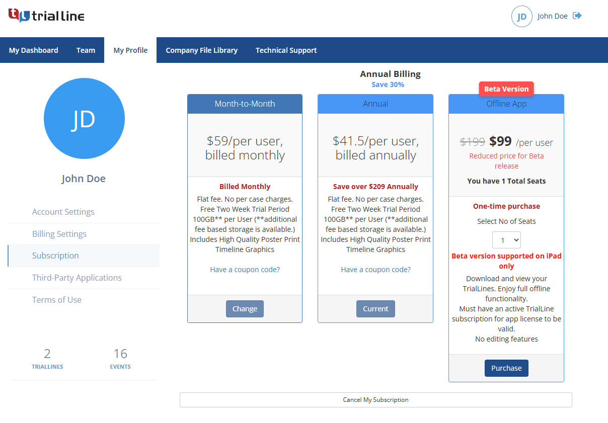We're happy to offer a 7 day FREE trial of TrialLine. No credit card required.